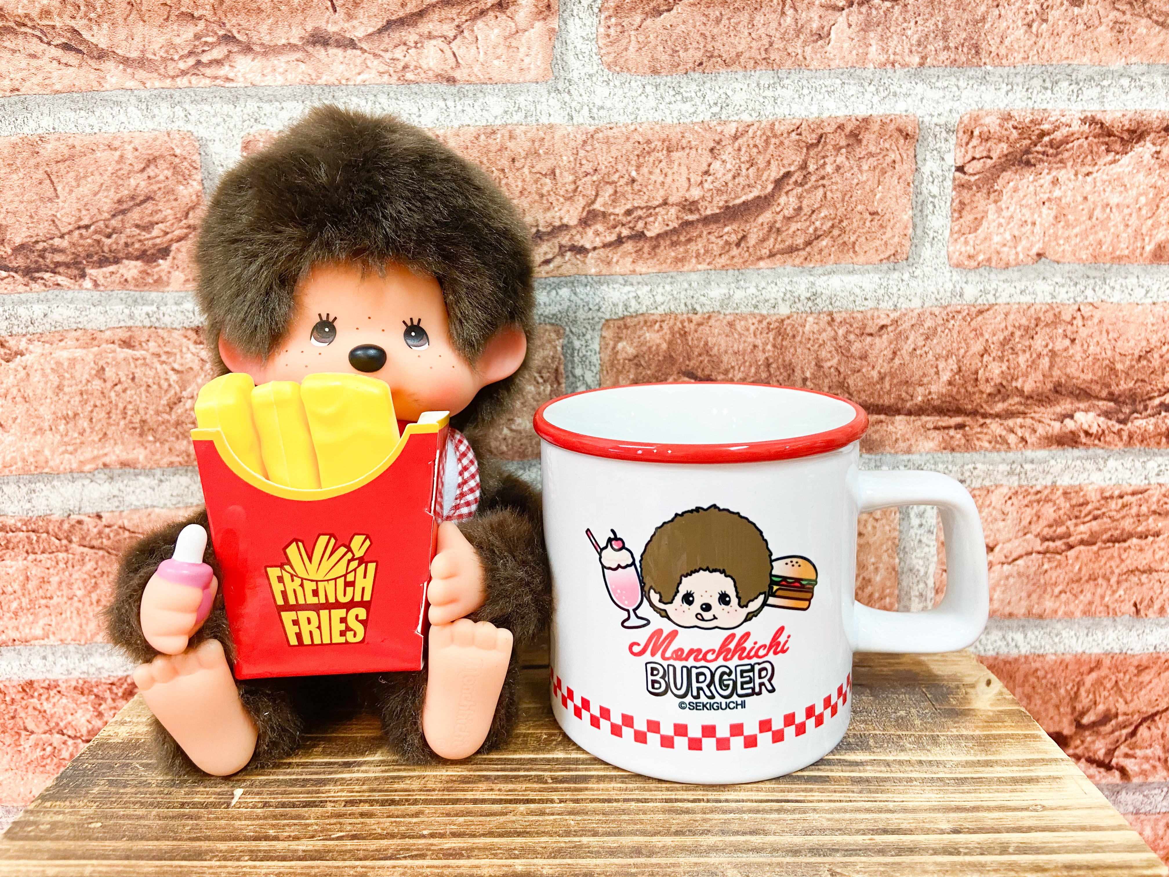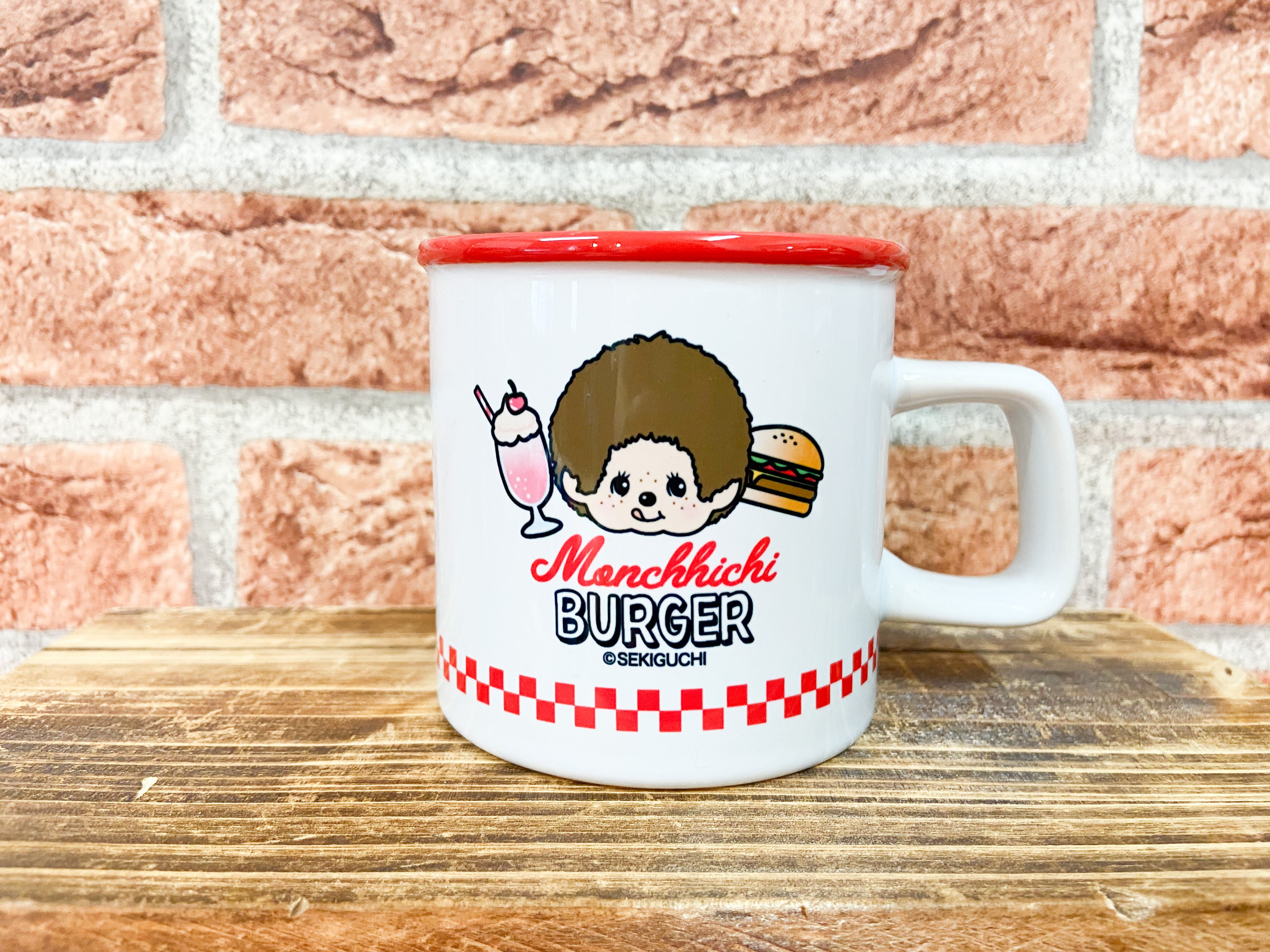 バーガー モンチッチ マグカップ モンチッチがバーガーショップをオープン!? アメリカンレトロな雰囲気が漂う、おしゃれでかわいいマグカップです★