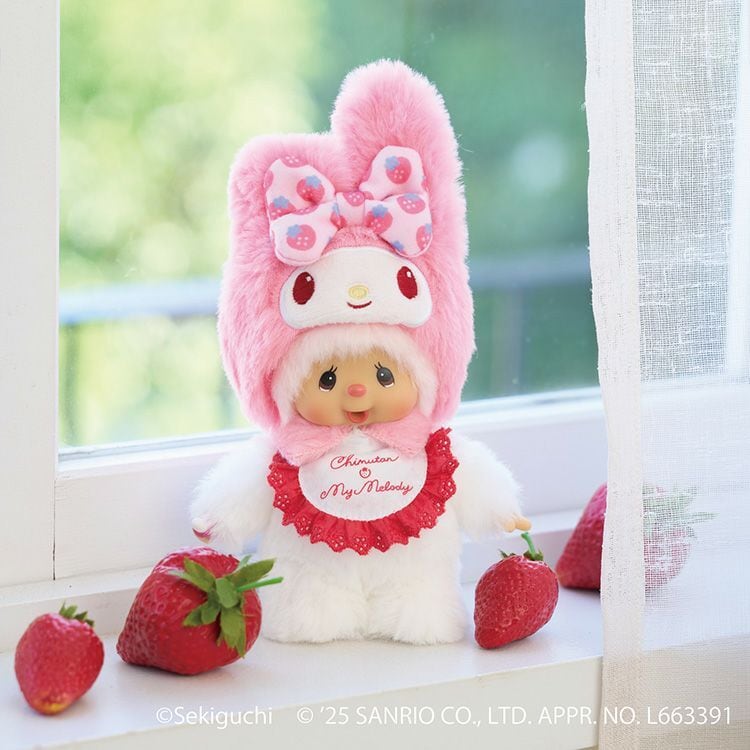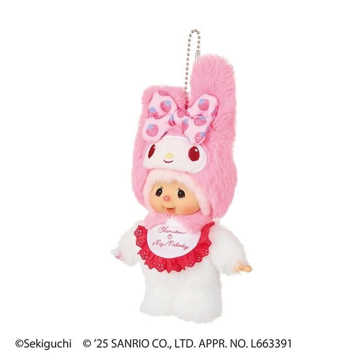 チムたん×マイメロディは、いちご柄のリボンがチャームポイントでキュートな雰囲気に。 ふわふわのボアでとてもやわらかい手触りです。 ボールチェーン付きなので、バッグなどに取り付けて持ち歩いたり、お部屋に飾ってもかわいいスペシャルコラボアイテムです。