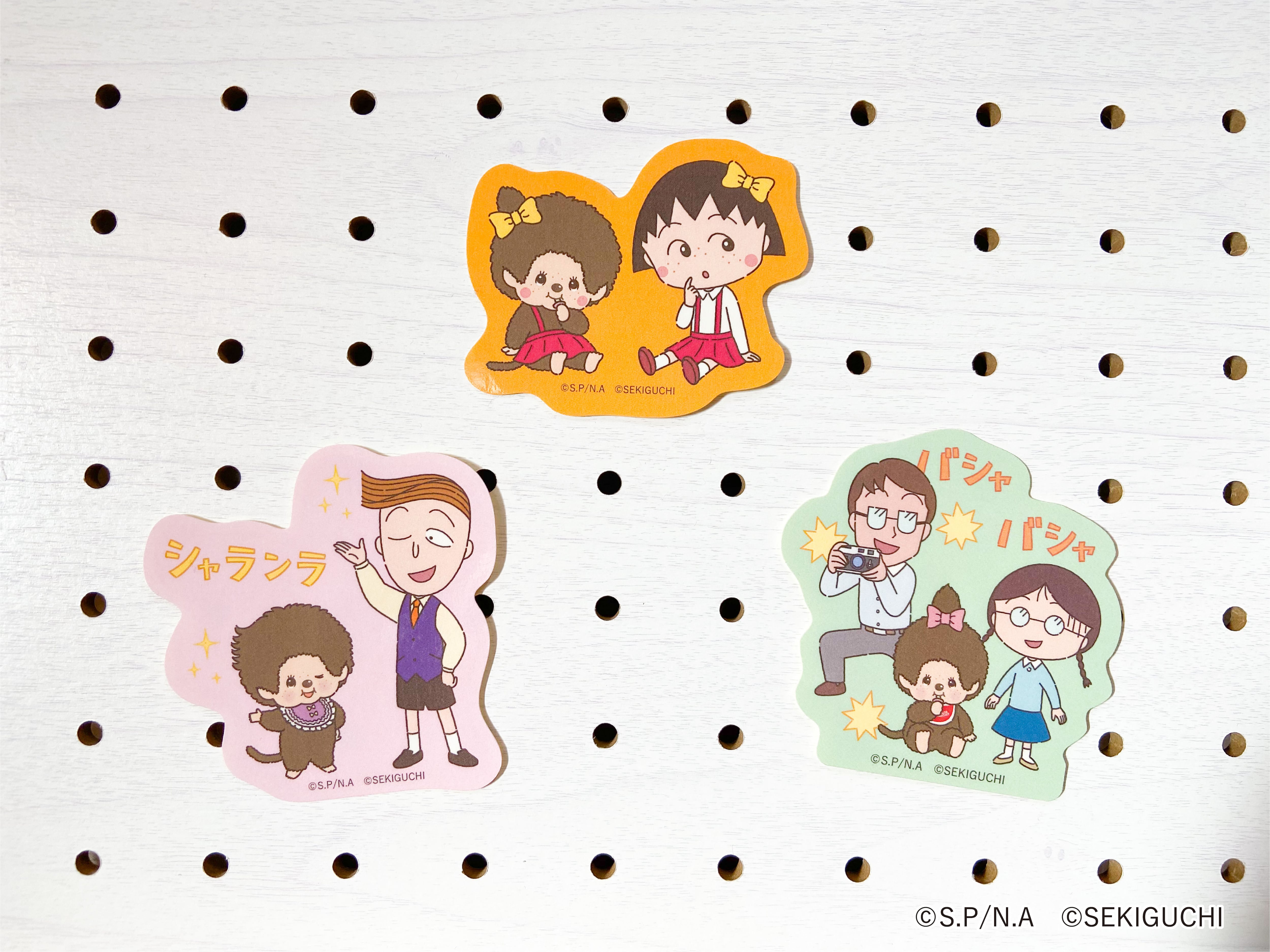 ちびまる子ちゃん×モンチッチコラボ ステッカー3枚セット おすわり