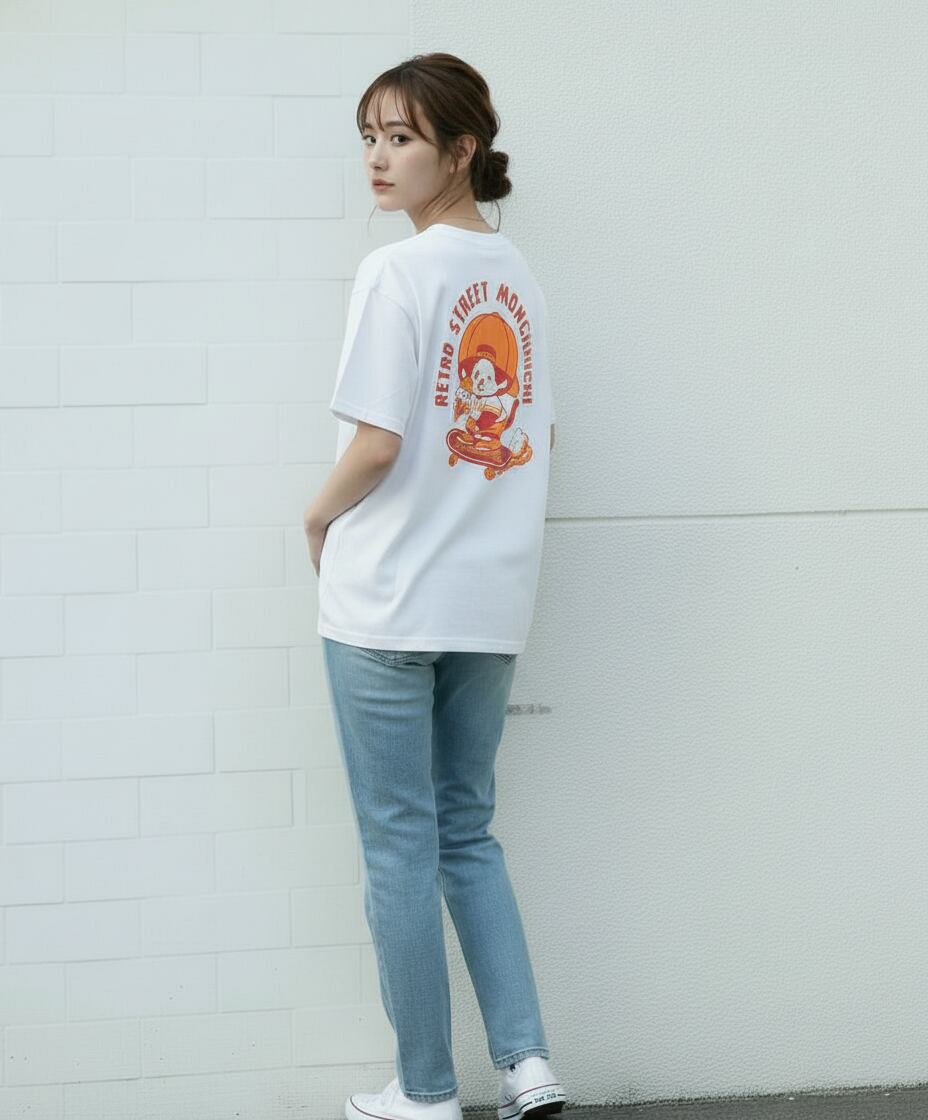 レトロストリート モンチッチ Tシャツ スケボー ホワイト