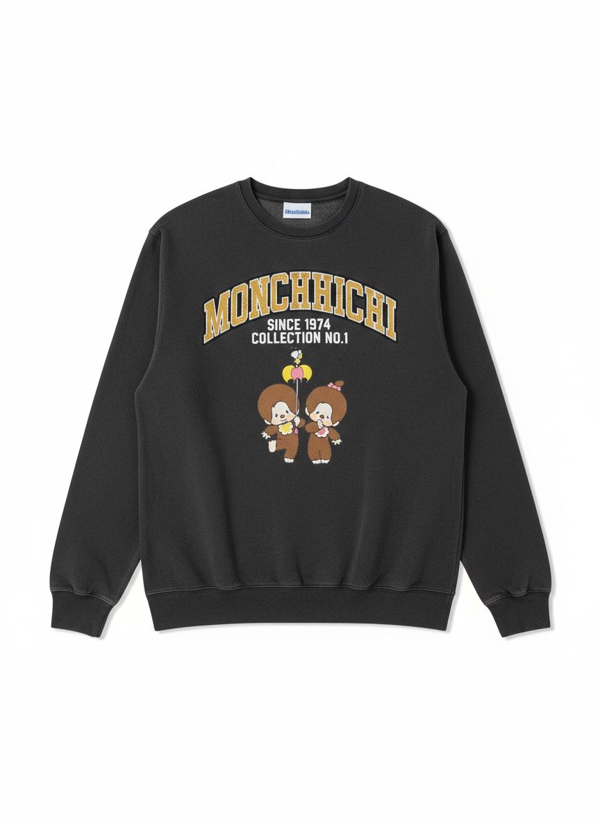 1974年の誕生から半世紀。世界中で愛され続ける「モンチッチ」を、カレッジスウェットのようなクラシックな佇まいで現代にアップデートしました。
