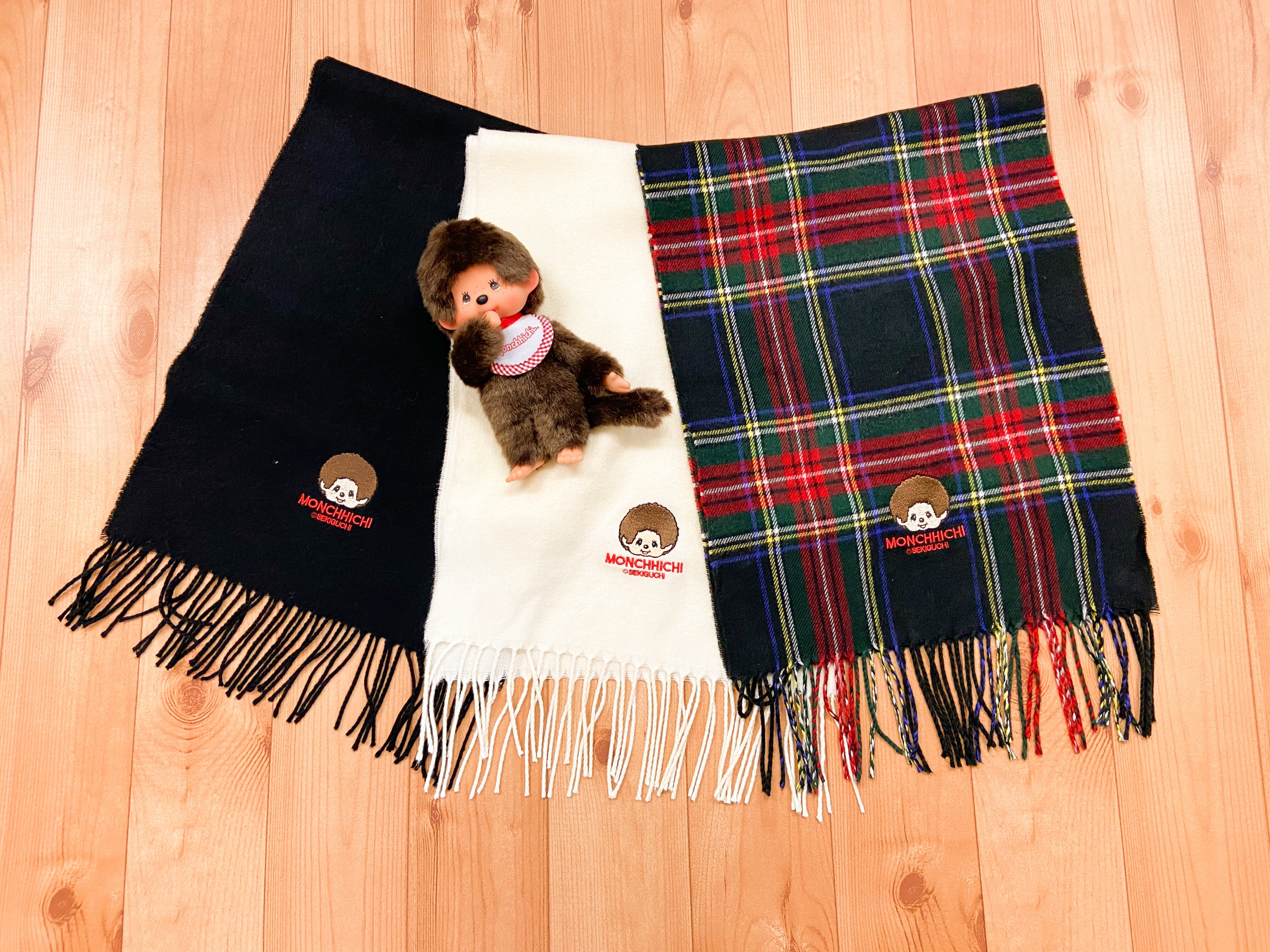 モンチッチの刺繍がさりげなくて大人可愛い!軽くて柔らかいので春先まで使える日本製のマフラーです。