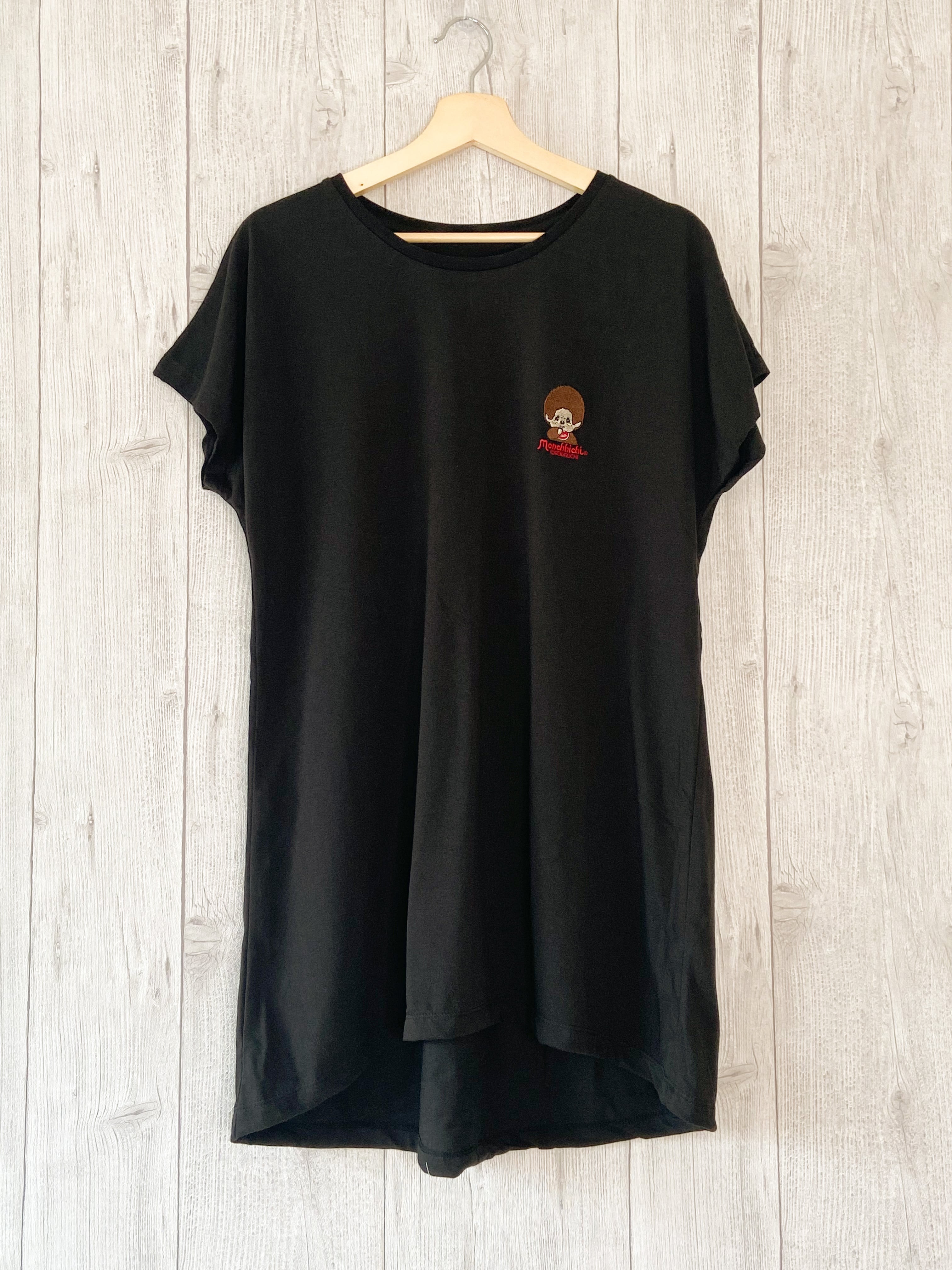 Otona モンチッチ 刺繍 ドルマンワンピース ブラック