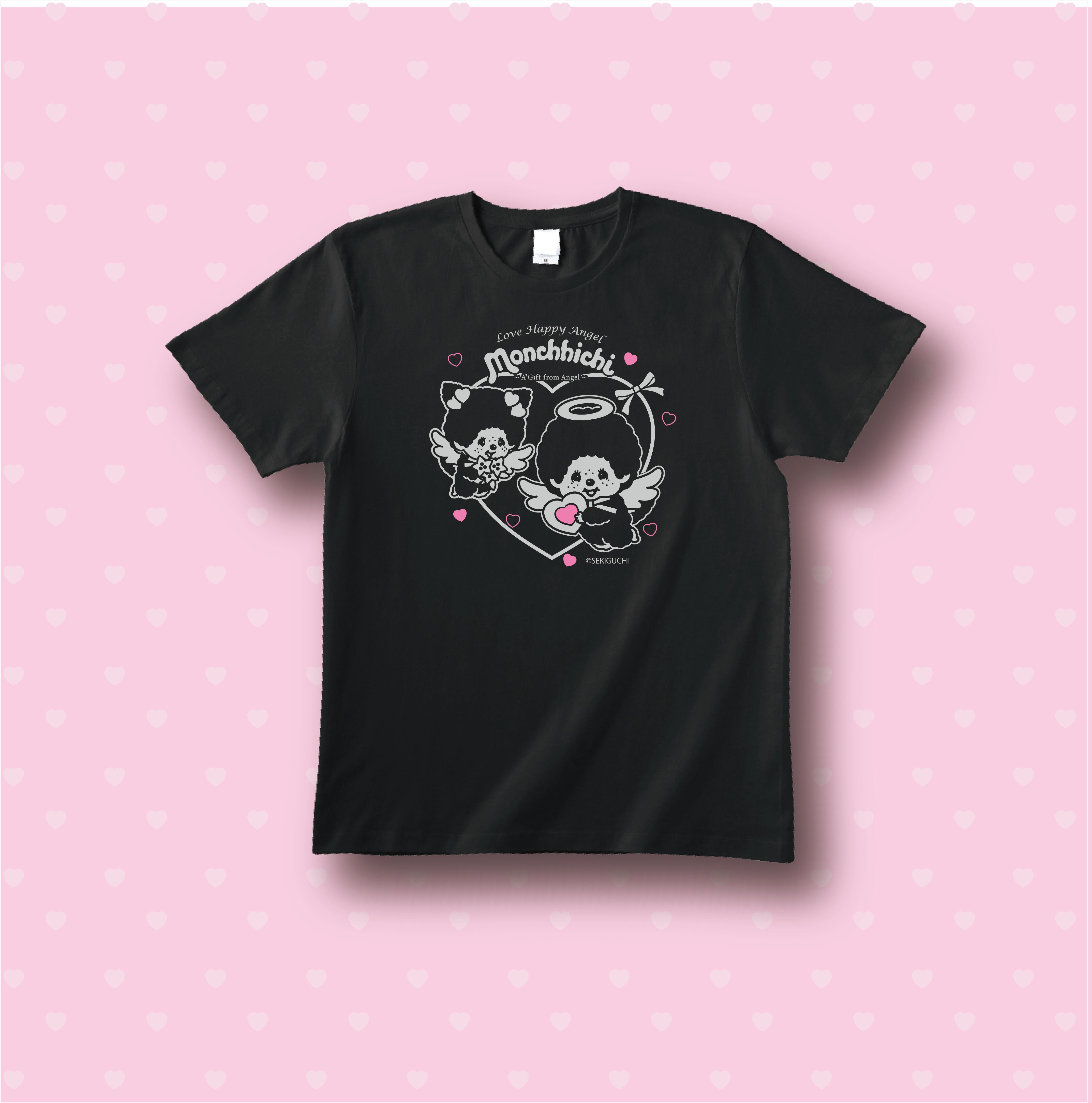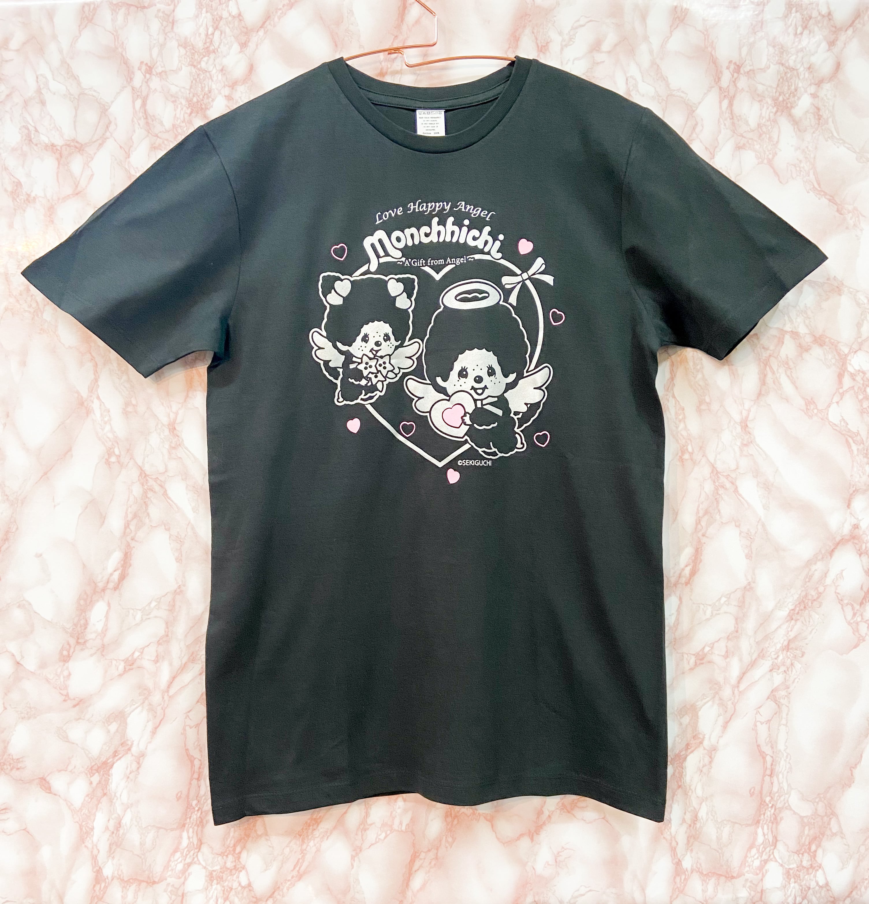 ラブ ハッピーエンジェル モンチッチ Tシャツ キラキラハート ブラック